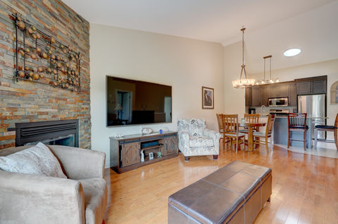 his gorgeous townhome has been completely renovated with attention to detail evident throughout. Amazing kitchen w/Cambria countertops, European pull-outs, soft close, stainless steel appliances, large breakfast bar & walk-in pantry. Living room offers cathedral ceilings, gas fireplace finished in stone and patio doors leading to patio. Beautiful hardwood floors continue into both bedrooms w/the primary retreat including walk-in closet and updated 3 pc. bth w/stunning tile/glass shower. Main floor laundry currently being used as walk-in pantry but ready w/full hook-ups for laundry. Garage is meticulous with epoxy floors and offers plenty of room to park your vehicle or storage. Walking trails and ponds surround the property and amenities are all within 5 mins. HOA fees are $110/mo and incl. roof fund. If you are looking for a very well-kept home with everything on one floor, look no further, we have found the home for you!